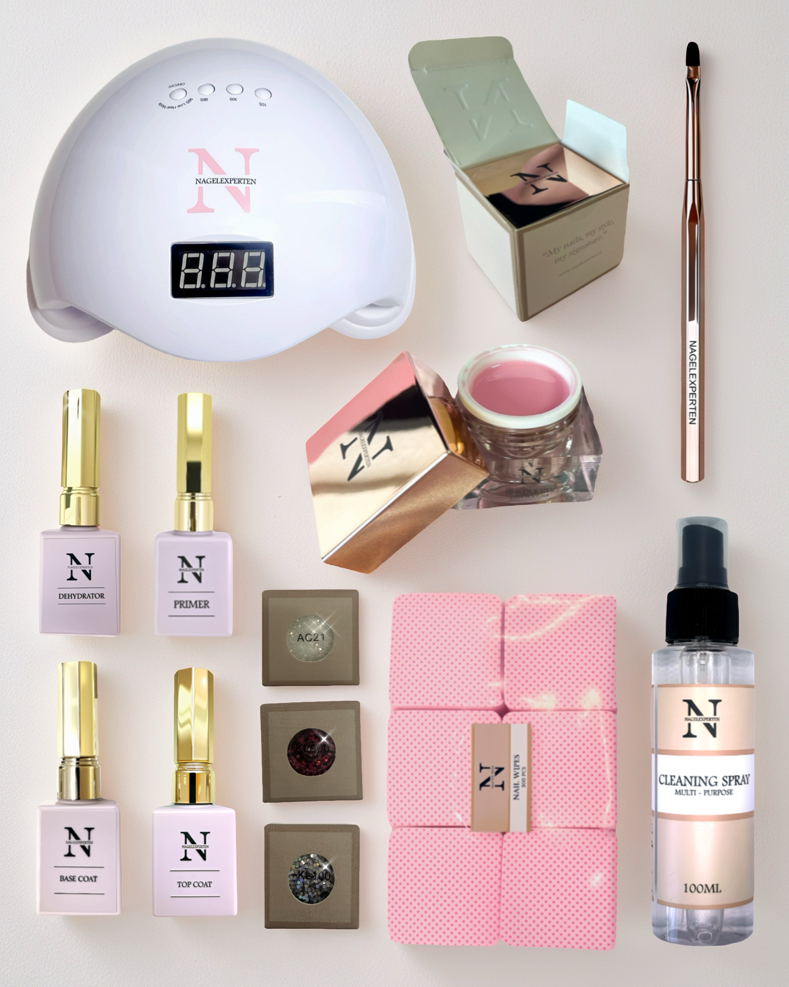 The perfect starter kit for those who want to get started making stylish gel nails right away! The nail kit contains everything you need, including a UV lamp.